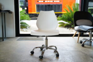 The Aki chair combines minimalist design with everyday functionality. Its smooth, curved shell seat provides comfortable support while maintaining a clean, modern aesthetic that fits seamlessly into offices, creative studios, meeting rooms, or home workspaces.
